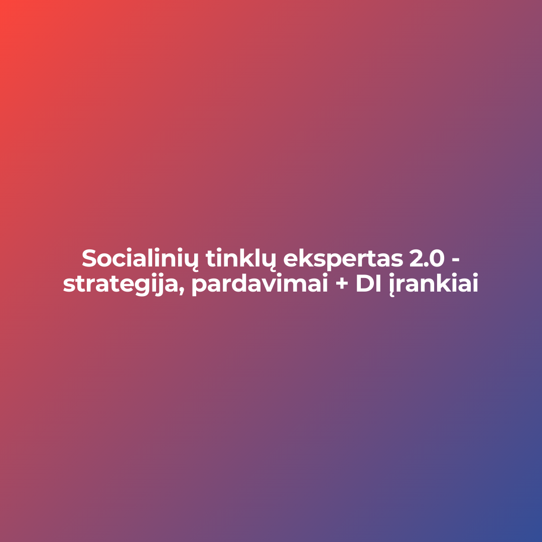 Socialinių tinklų ekspertas 2.0 – strategija, pardavimai + DI įrankiai lizingas